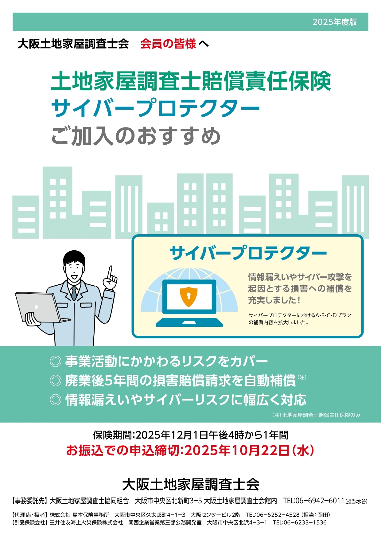 また、令和4年4月1日の個人情報保護法改正に伴い、情報漏えい補償は特約から改め「サイバープロテクター」とし内容を拡充しております。